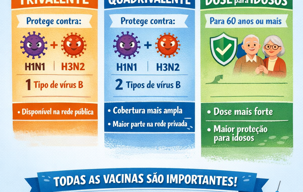 A vacina trivalente já protege contra os vírus mais importantes em circulação, enquanto a quadrivalente amplia a cobertura contra mais um subtipo do vírus B.